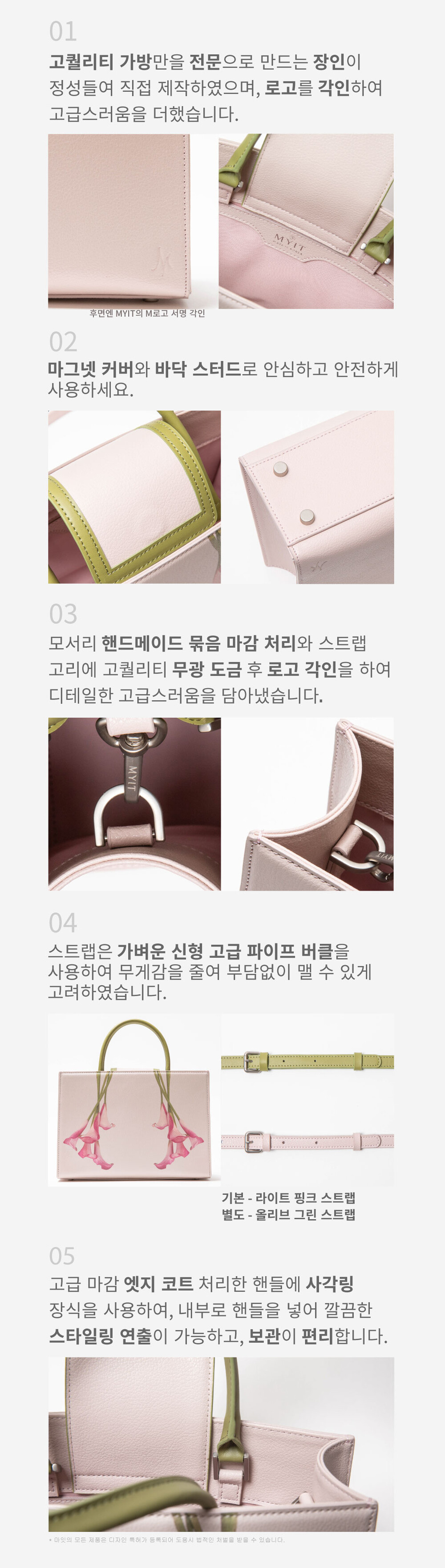 6. 본 가방의 모든 임가공 방식은 모두 수작업으로 이루어집니다. 사이즈는 수작업 공임과 측정에 따라 1~2cm정도 오차가 있을 수 있습니다. 그리고 장인이 수작업으로 박음질하여 마무리하는 공정 특성상 박음질 땀수, 실밥이나 잡사 등은 제품 불량 사유가 아닙니다.
